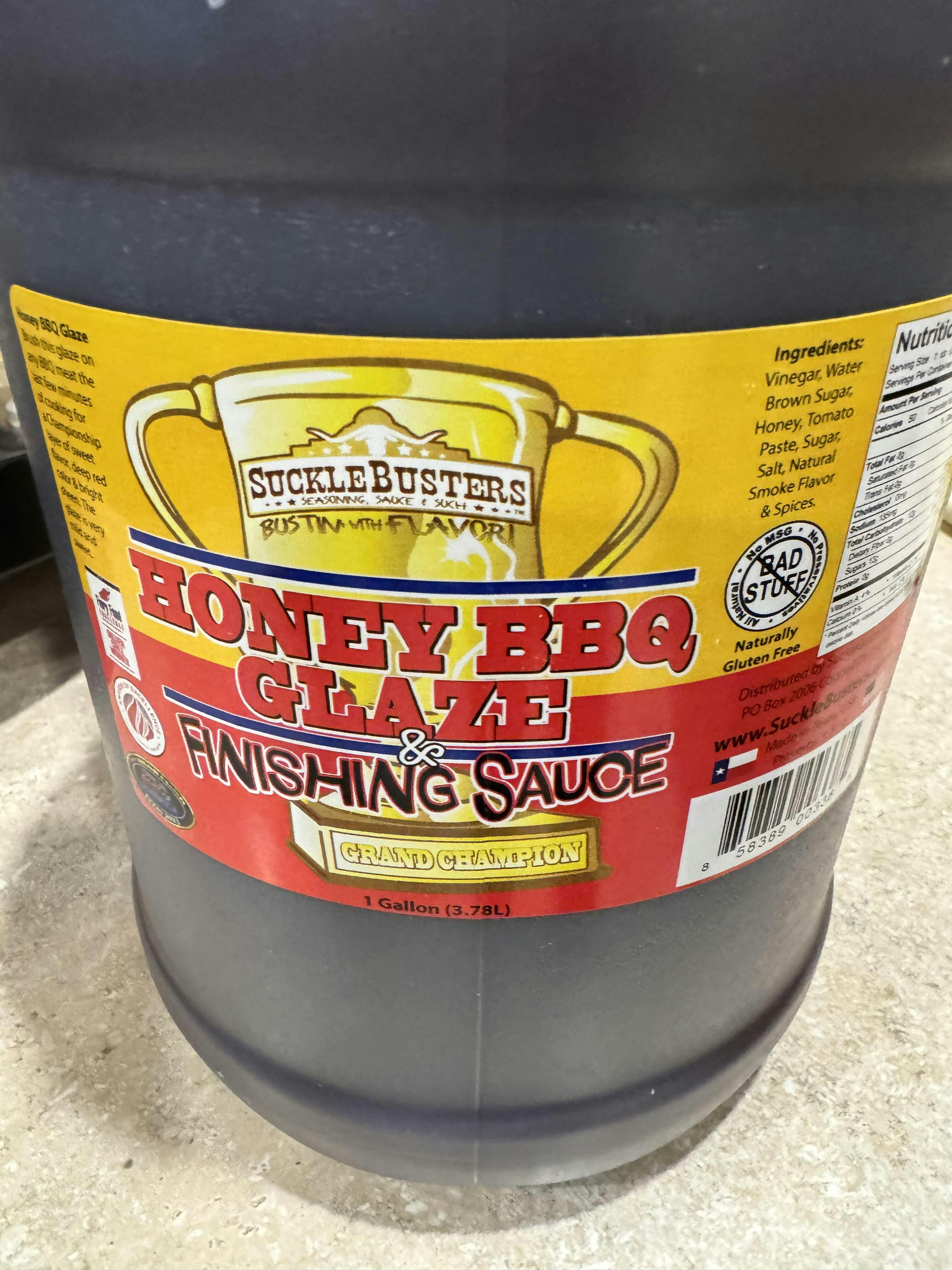 Gallon jug of the Best BBQ Sauce in Texas. SuckleBusters Award Winning Original BBQ Sauce.