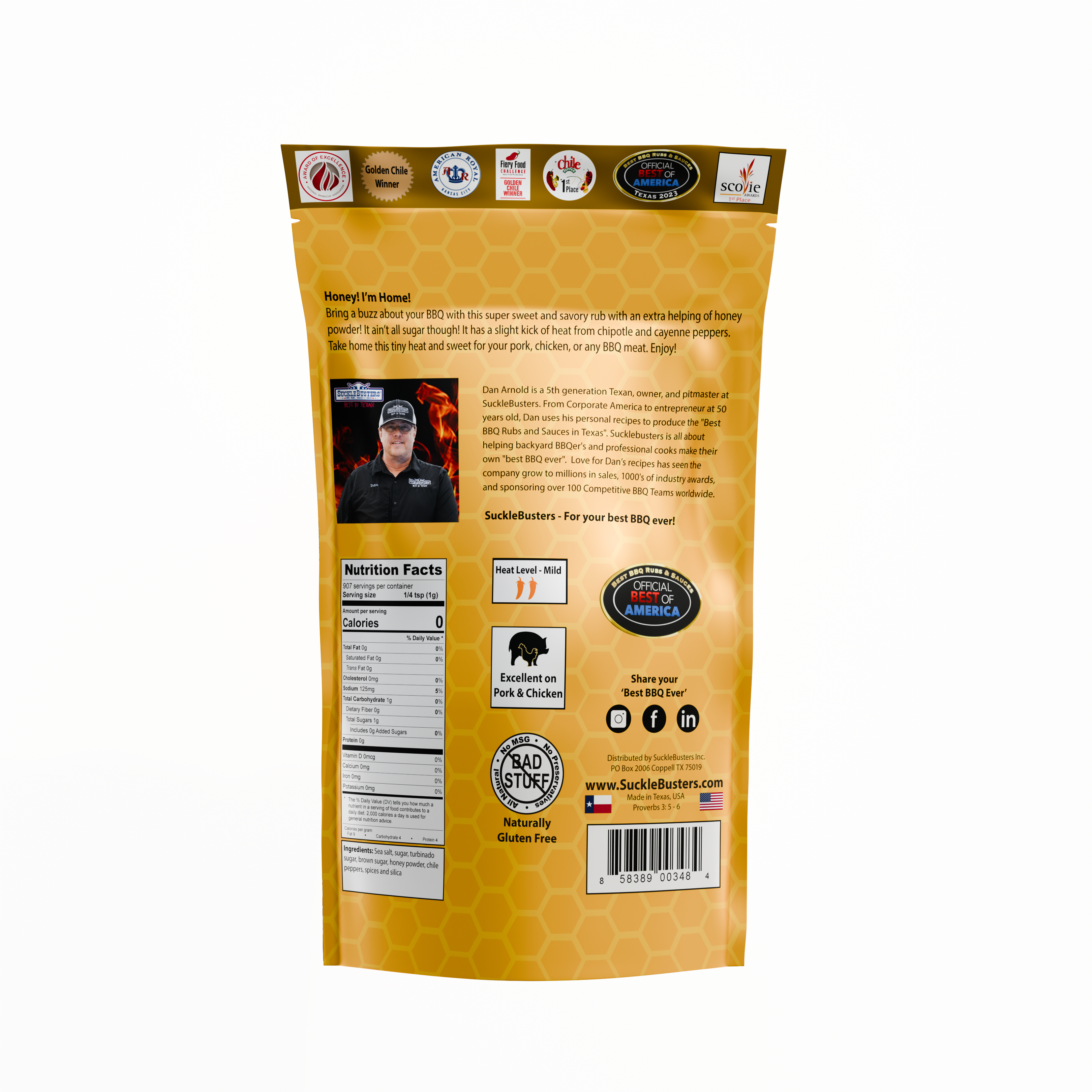 Elevate your BBQ game and embrace the delectable potential of SuckleBusters Honey BBQ Rub. Experience the magic of sweet and savory coming together in perfect harmony, enhancing your BBQ with every sprinkle. Taste the difference and let your dishes shine with the luscious touch of honey-inspired goodness.